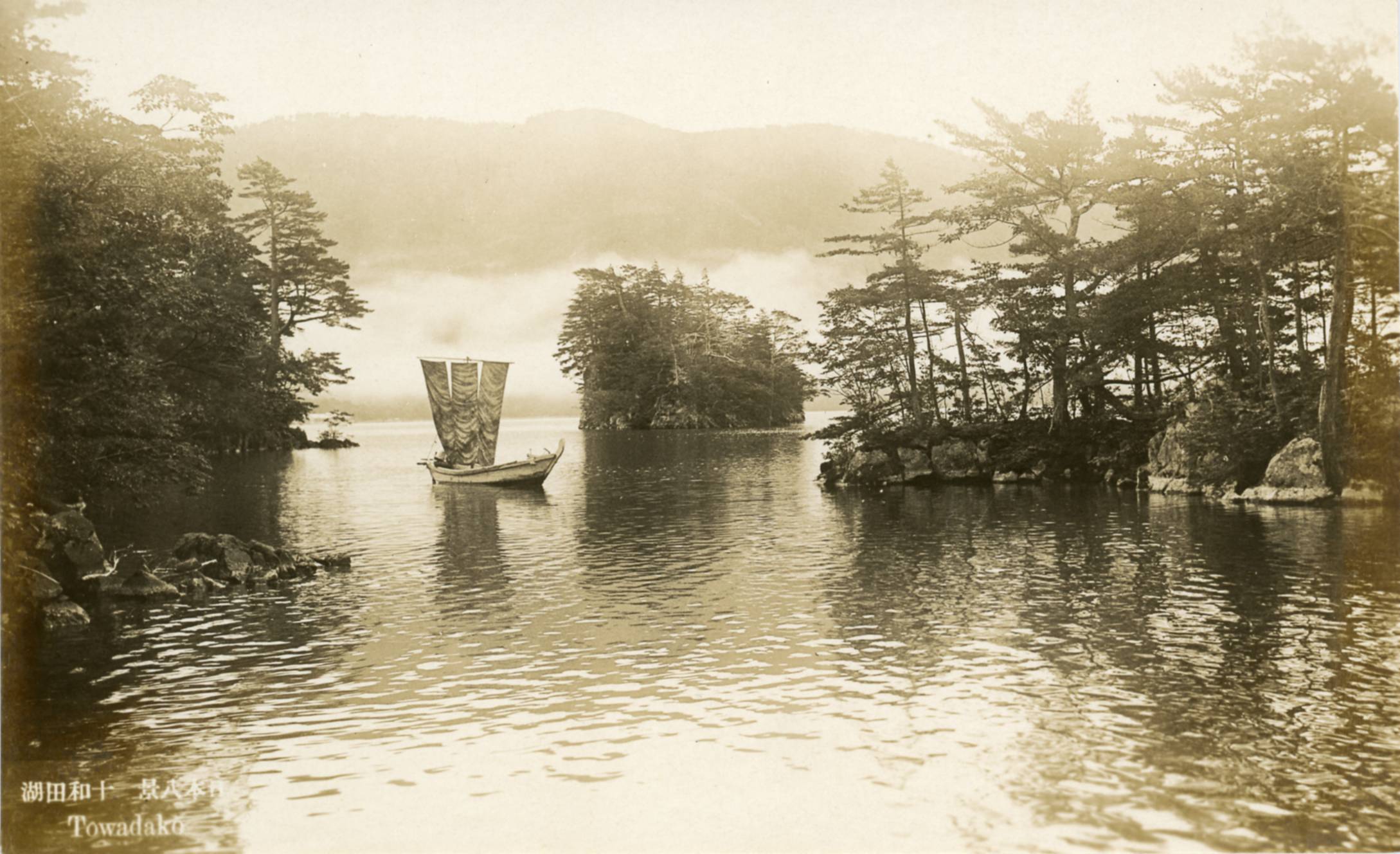 絵ハガキ(日本八景二色刷 深山万古の水色十和田湖の風光)