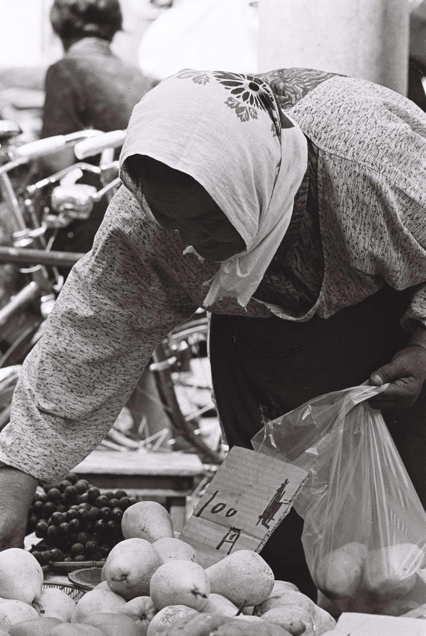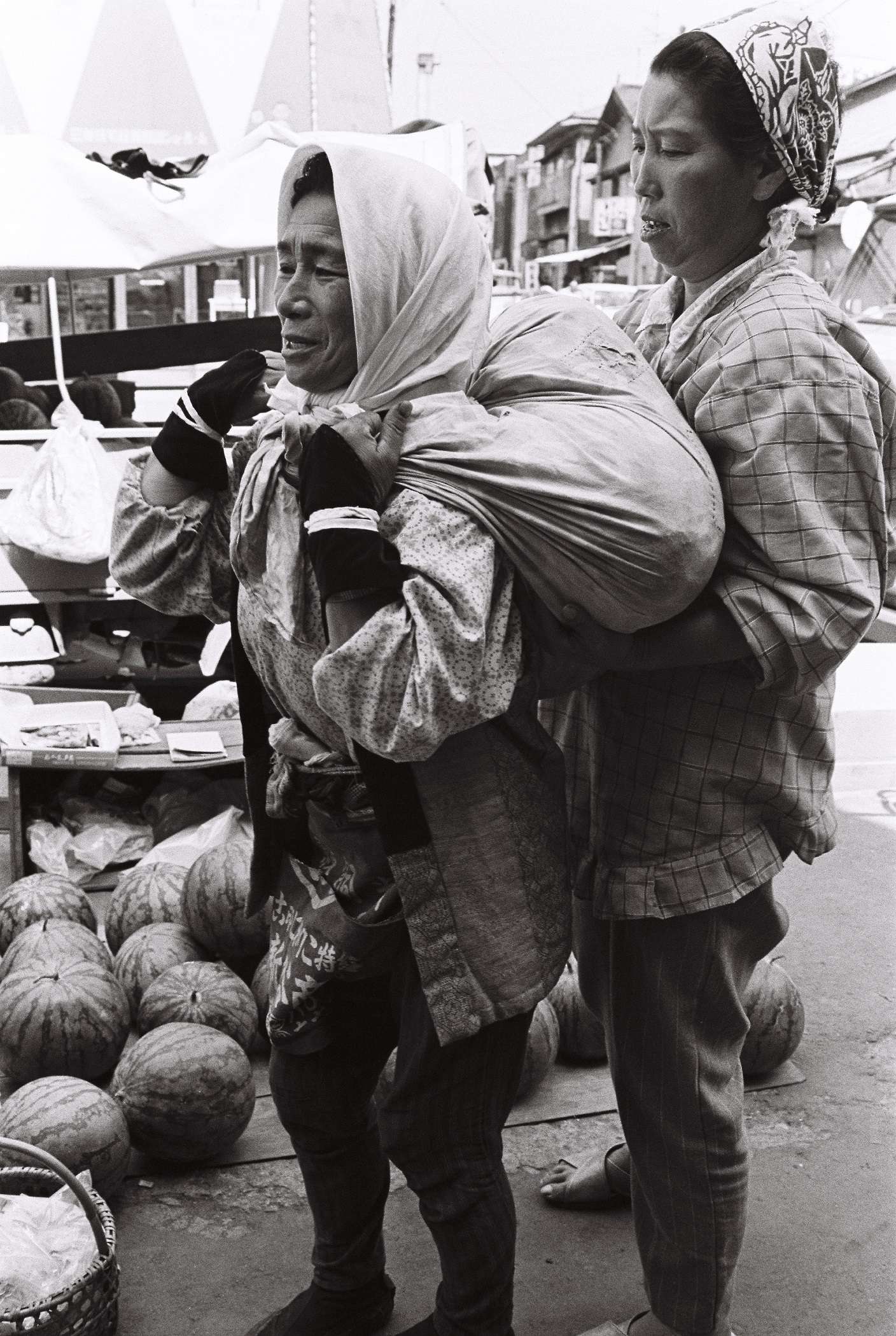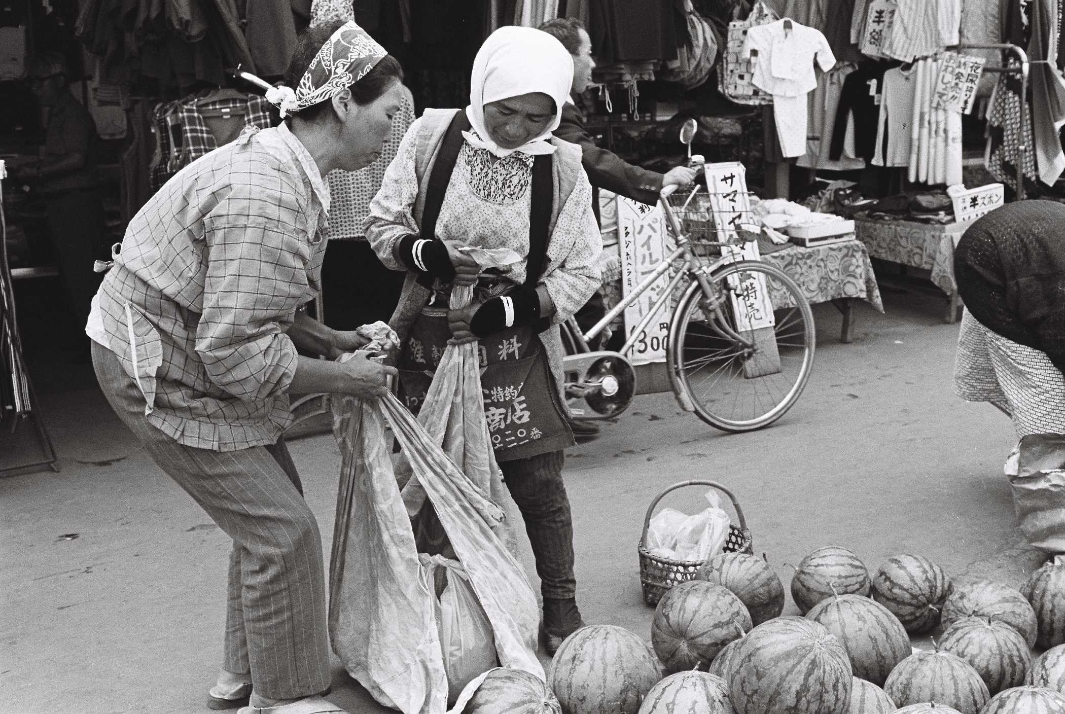 浜で獲った貝類を換金する海女さん
