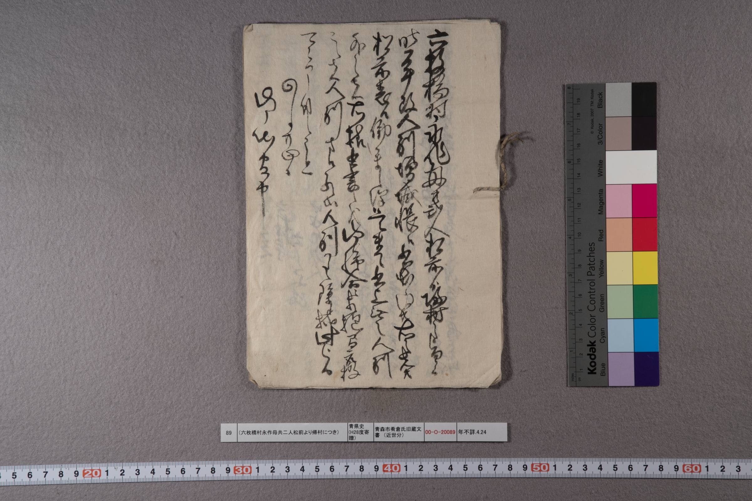 (六枚橋村永作母共二人松前より帰村につき)