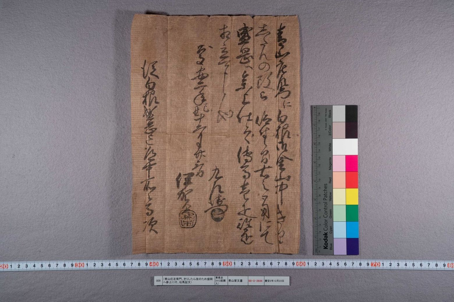(青山庄左衛門、きりしたん改のため盛岡へ参上に付、伝馬証文)