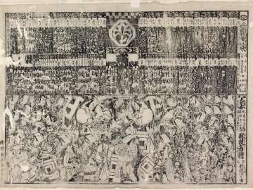 江戸大芝居木戸前言立并ニ声色連中新役者付 見立、三芝居声色連名