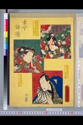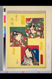 「古今俳優」「五郎時致 初代市川雷蔵」「森の蘭丸 二代目市川雷蔵」「奴浪平 三代目市川雷蔵」