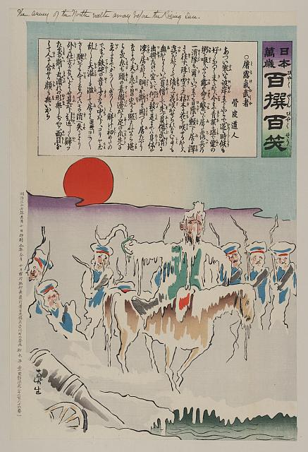 ![[Japanese sailor, with his bare hands, is fighting with two Russian battleships (with arms, legs, and faces), a third battleship runs away]](https://tile.loc.gov/storage-services/service/pnp/jpd/00900/00984_150px.jpg)
