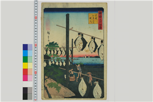 One Hundred Views of Famous Places in the Provinces: Drying Flounders, Wakasa