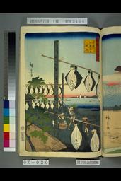 Strung-up Flounder, Wakasa Province (Wakasa karei o sasu) from the series “One Hundred Famous Views in the Various Provinces (Shokoku meisho hyakkei)”