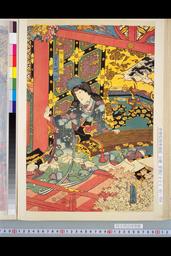 「音羽山比ふ 新薄雪懸想物語 千松島競ぶ 金波月藤綱物語 三芳野紛ふ 戯場花曽我物語 茲猿若三鳥写 晴模様染衣更着 大錦画 三番続 立川斎国郷画」