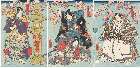 Kataoka Gadō II as Tawara Tōda (right panel); Arashi Rikaku II as Otohime (left panel)