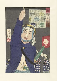 Hirate Kenmotsu, een staf heffend