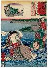 「木曽街道六十九次之内」 「四十四」「落合(「おちあひ」)久米仙人」「晒女」