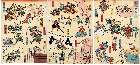 「市村座楽屋之図」「関三十郎」「大和太夫」「嵐此五郎」「豊前太夫」「岩井粂三郎」「嵐雛助」「関松三郎」「市川松五郎」「市川朝太郎」「尾上雷太」「市川団之助」