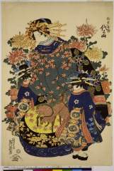 Print from Mirror of new Yoshiwara courtesans with samples of their calligraphy (Yoshiwara keisei shin bijin awase jihitsu kagami)
