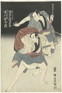 Bando Mitsugoro II as Onio Shinzaemon and Ichikawa Omezo I as his younger brother Dozaburo (Object)