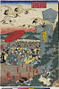 「右大将頼朝公鶴ヶ岡八幡宮へ法楽のため千羽の鶴を放生会を行ひ給ふの図」