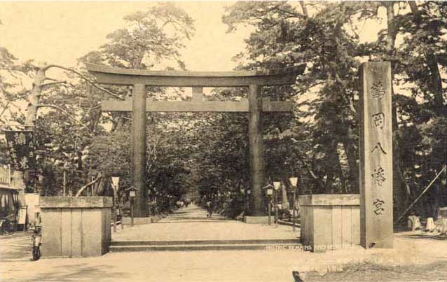 有名な公孫樹は昔を語って静寂嚴かに漂ふ國幣中社鶴ヶ岡八幡宮