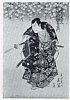 The Actor Nakamura Juzo II as Asahara Hachiro disguised as the servant of a princely family, from the play "Onna Aruji Hatsuyuki no Sekai," performed at the Morita Theater in the eleventh month, 1773
