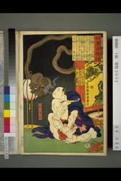 The Wrestler Onogawa Kisaburō Blowing Smoke at a One-Eyed Monster