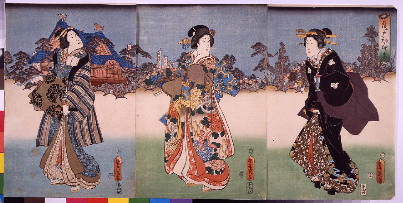 Famous Views of Tokyo: The First Day of the Rabbit Festival at the Myogi Shrine in the Kameido Tenman Shrine