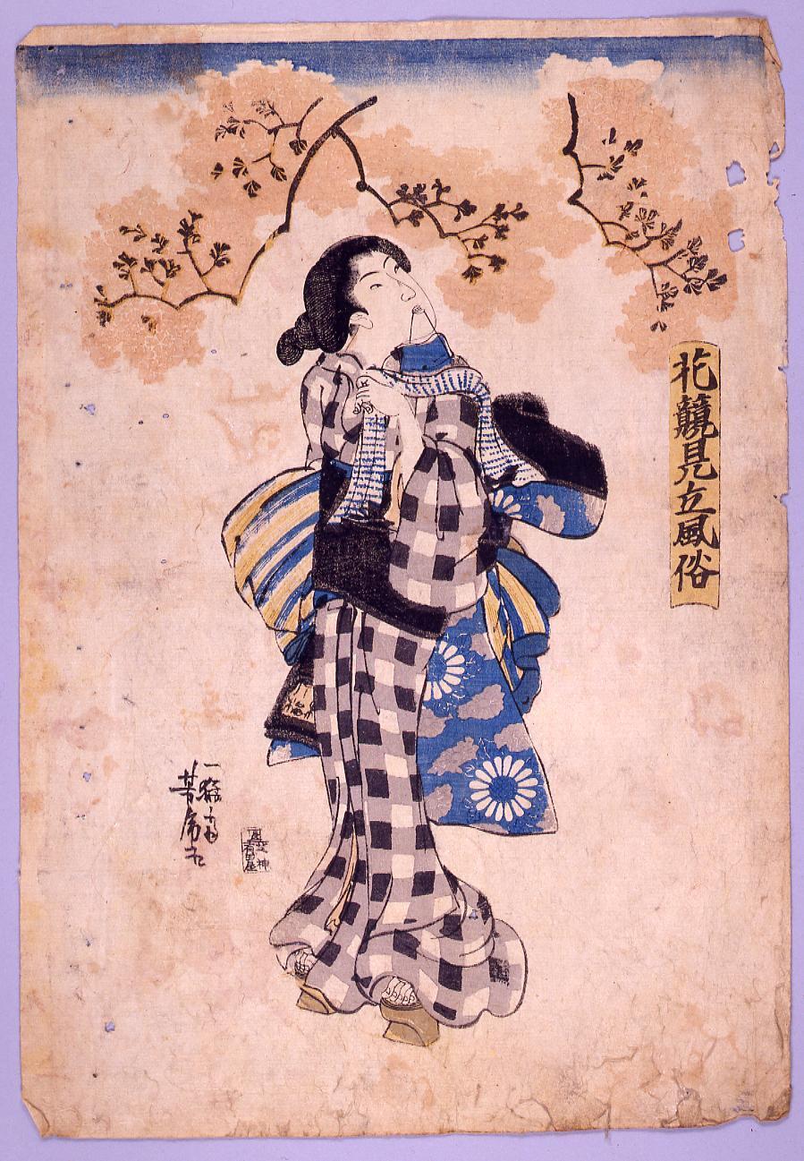 Actor Iwai Hanshirō 2nd AS A WOMAN HOLDING A PIPE BY A VERANDAH