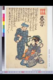 The actors Ichikawa Danjuro VII as Kajiwara Genta Kagesue and Ichikawa Monnosuke III as Umegae