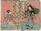 Sawamura Kunitaro as Ayame no Mae and Arashi Kitsuzaburō as Hyōgo no Kashira Yorimasa