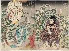 Actors Nakamura Utaemon IV as Honjōmaru Tsunagorō (R) and Bandō Shuka I as Ofusa's younger sister Koito (L)