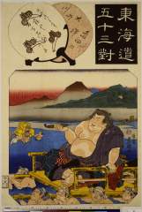 「東海道五十三駅名画之書分」 「三嶋」「箱根」「筆助 中村芝翫」