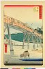 Okazaki: Yahagi Bridge on the Yahagi River (Okazaki, Yahagigawa Yahagi no hashi), no. 39 from the series "Famous Sights of the Fifty-three Stations (Gojusan tsugi meisho zue)," also known as the Vertical Tokaido