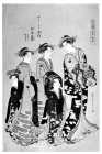 Komurasaki of the Tamaya with the Attendants Kochō and Haruji from the Series Collection of Contemporary Popular Beauties