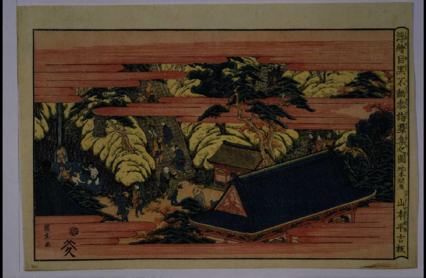 「新版浮絵目黒不動境内#」 「新板浮絵目黒不動境内之図」