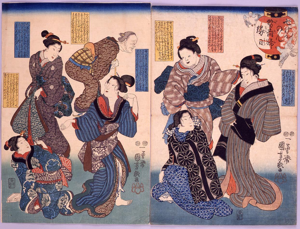 「七けんのん 務寿婦縁日」 「七けんのん務寿婦縁月(三枚続)」