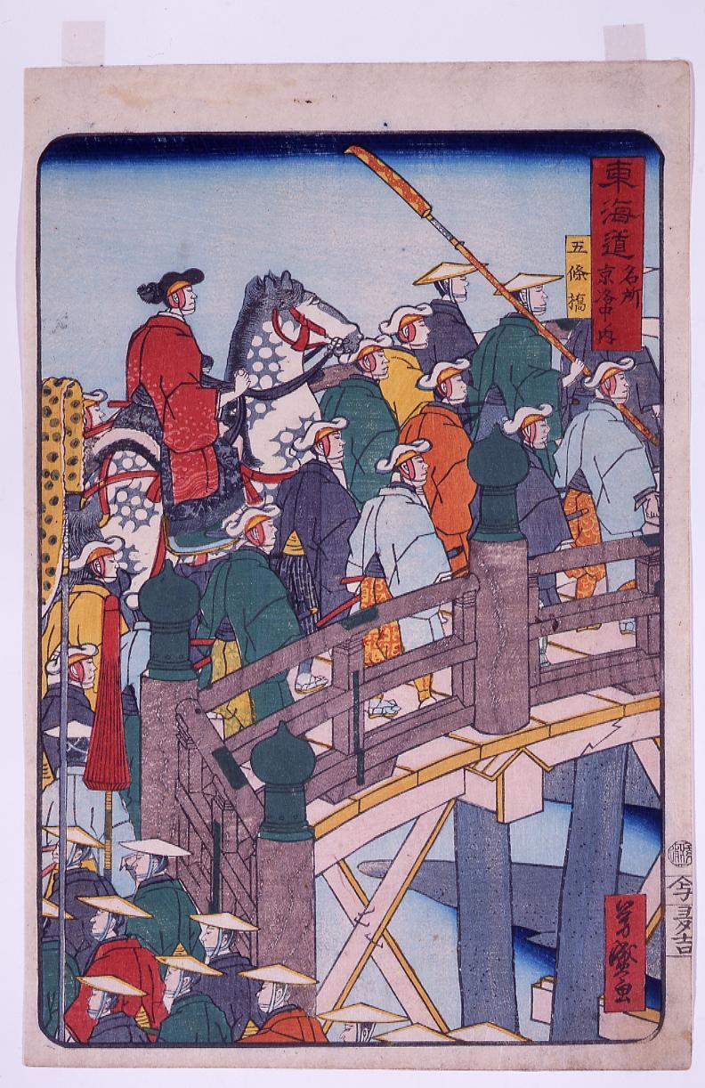 Famous Views of Tokaido Road : Gojobashi Bridge, in the City of Kyoto , a Famous Place in Tokaido Road