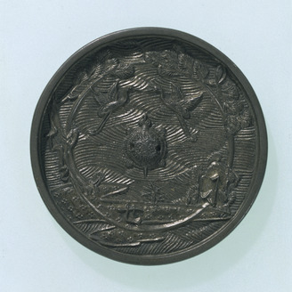 州浜松樹双鶴葦手絵鏡