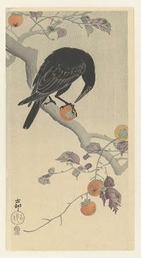 Kraai met kakivrucht