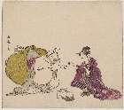 Old Priest and a Monkey, series Comparing Flowers (はなくらべ)