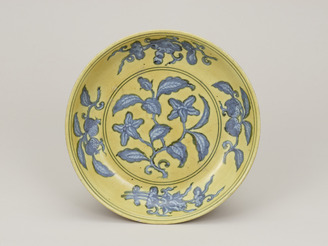 Dish with Design of Flower-and-fruit Spray, Under-glaze Blue and Over-glaze Yellow