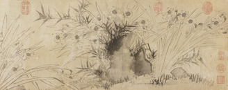 紙本墨画淡彩竹斎読書図〈伝周文筆/〉