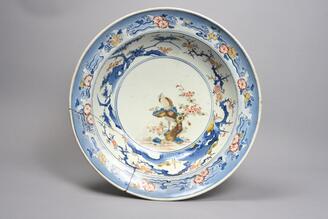 Bowl, Flower and bird design in overglaze enamel