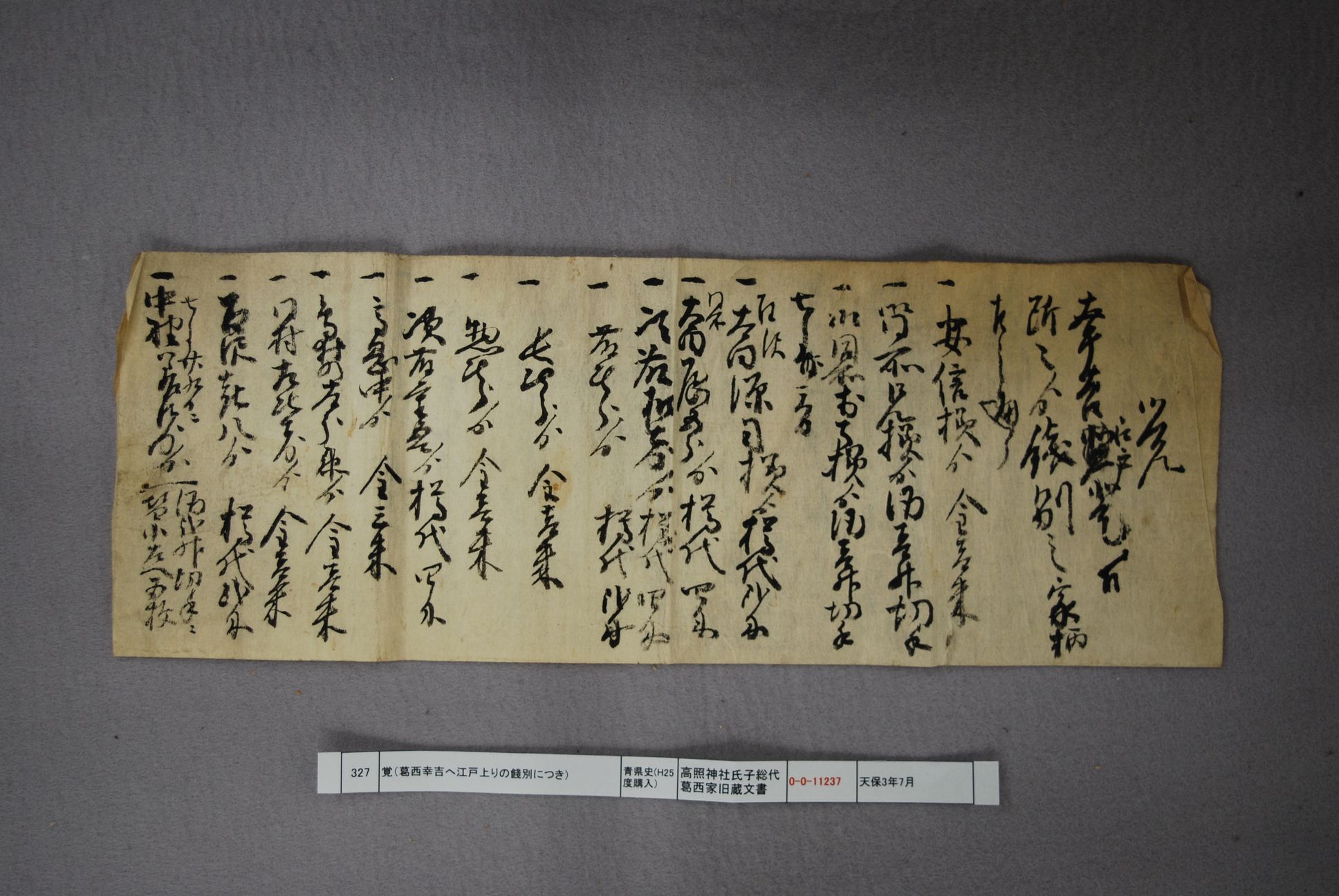 覚(葛西幸吉へ江戸上りの餞別につき)