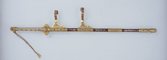 Kazari-tachi Style Sword Mounting, Design of phoenixes and plants in mothre-of-pearl inlay on wood ground and gilded fittings