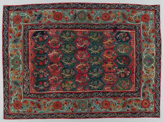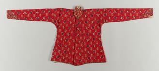 Outer Garment, Design of flowering plants in embroidery on a red ground