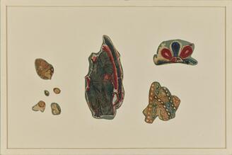 Textile with a Buddha and Vines (Fragments)