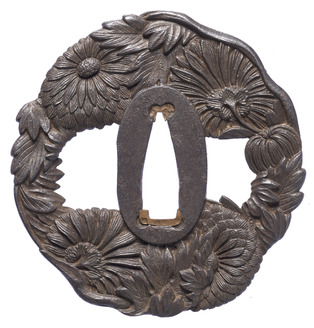 Tsuba with a Hanging Bouquet ("Kusudama")