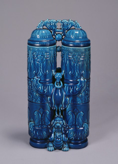 Connected Jars, Blue glaze, dragon and wave design
