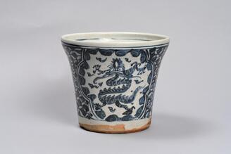 Lidded Fresh Water Container with Dragons and Flowers in Underglaze Blue