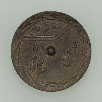 Mirror with a design of one person named Pei Wei playing Lute in the Garden Horai (Excavated from the pagoda site of Reian-ji temple, Nara)