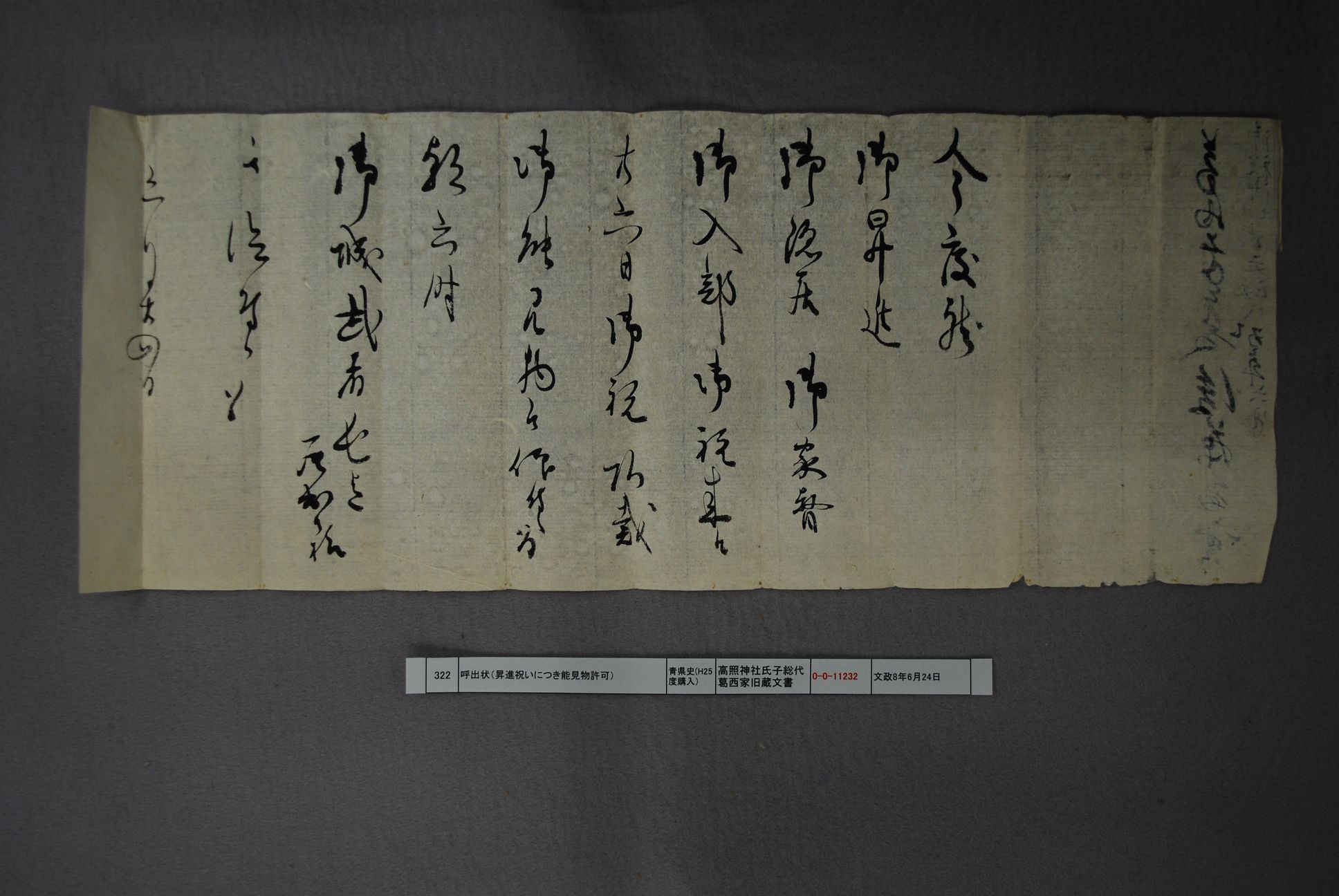 呼出状(昇進祝いにつき能見物許可)