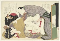 Courtesan and Her Attendant on a Balcony Overlooking River