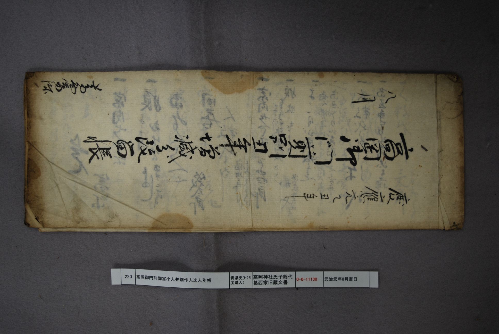 高岡御門前御宮附小人并畑作人共御救頂戴留帳