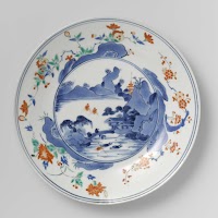 Plate with a water landscape and flowering plants