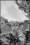 F K May and R W Poppe camp among the ruins of the castle of Vicalvi, Italy, World War II - Photograph taken ...
